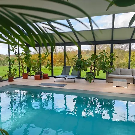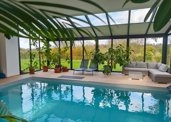 Featuring a heated swimming pool for guests' relaxation, the 2-bedroom La Vallee Saint-Pierre-Langers villa is located 3.1 km from the Abbey of La Lucerne. Featuring access to a terrace, the holiday home is located 15 minutes by car from the Hermitière Farm.